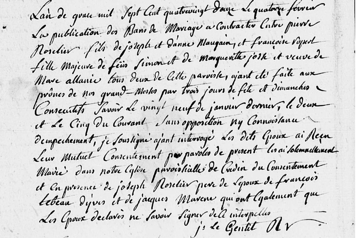 Jean Marie est le frère de Mathurin, il se marie également avec une Louise Ropert, fille de Jean Ropert et de feue Marie Guigent, décédée le 5 février 1808