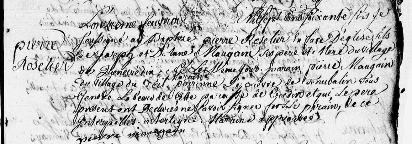 Parrain Pierre Maugain du village du Teil, marraine Yvonne Le Lièvre de Ténubalin (?)